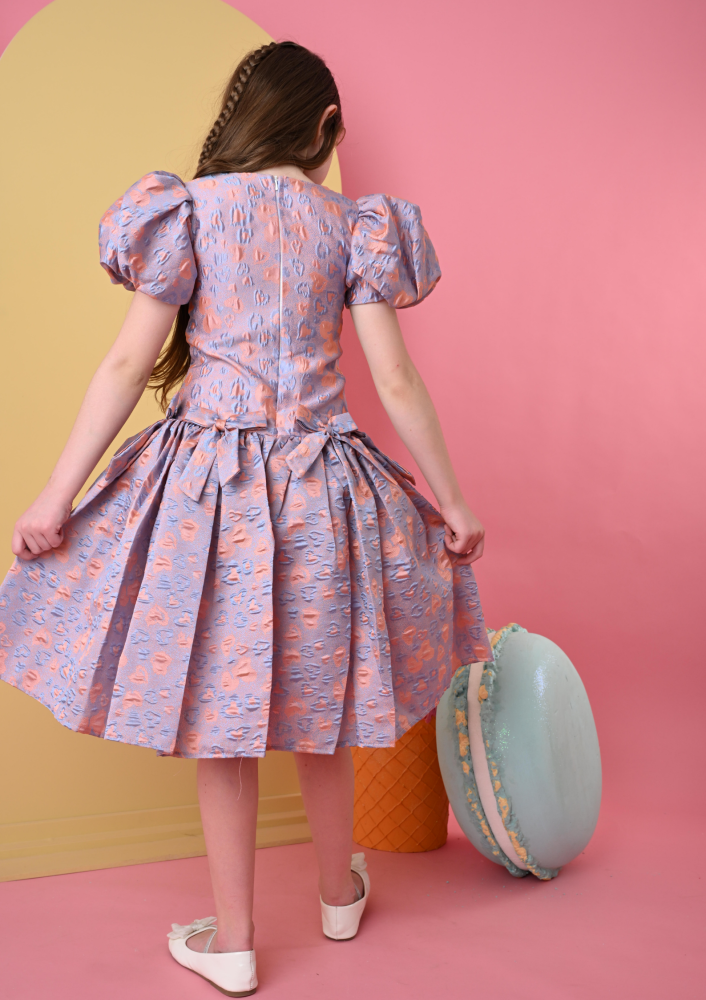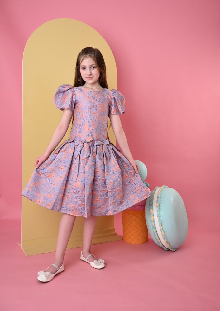 يُجسد فستان "ماريسا" الأنوثة الطفولية بأسلوب مرح ومبهج، حيث يأتي بتصميم مزين بنقوش صغيرة بألوان زاهية تضفي عليه لمسة من الحيوية والمرح. يتميز الفستان بأكمام منتفخة وتنورة واسعة تمنح الصغيرات إطلالة ساحرة ومريحة. القماش المستخدم هو القطن الناعم مع طبقة خفيفة من التول لضمان الراحة المثلى والانسيابية في الحركة.