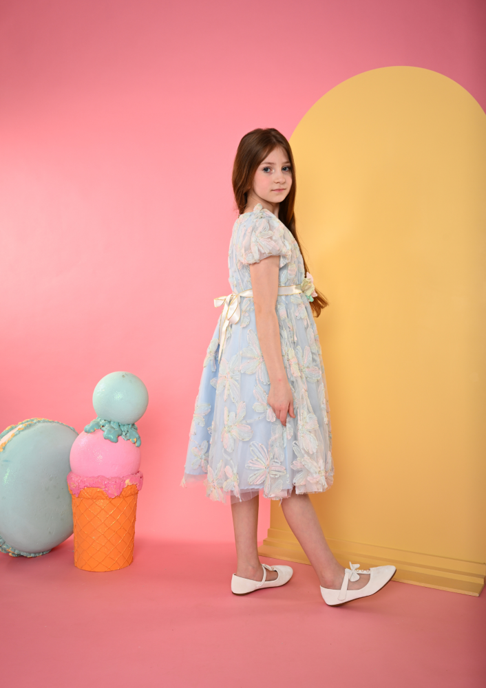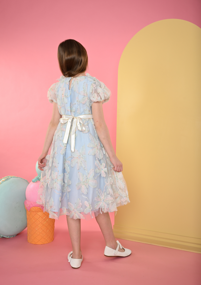أناقة ساحرة بلمسة سماوية! احصلي على فستان اطفال تل سماوي الآن من لادون ودعي أميرتك تتألق برقة.
